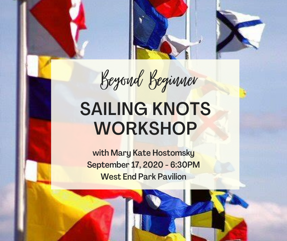 Our first workshop, offered by Mary Kate Hostomsky, will focus on common knots used in sailing and good practices in line care. Members will learn key sailing knots, their applications and features, as well as have a chance to practice tying each knot on their own. Join Mary Kate starting at 6:30pm on September 17 at the West End Pavilion. All supplies will be provided.